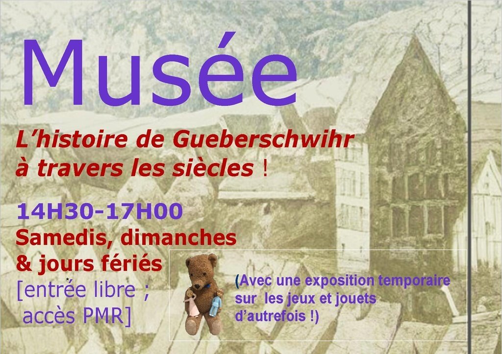 Les samedis, dimanches et jours fériés de décembre, de 14H30 à 17H00. Entrée libre, accès PMR. Visites guidées possibles, y compris en alsacien.