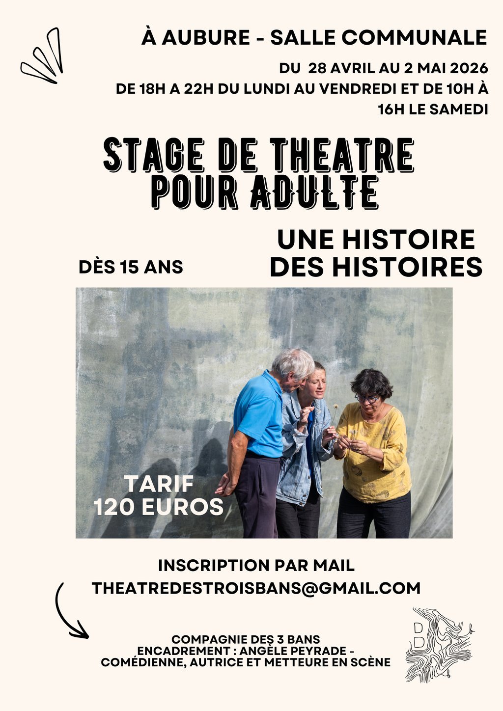 Participez à ce stage de théâtre pour adultes organisé par la compagnie Théâtre des trois bans à Aubure !