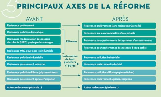 | 2/ Agence de l’eau Instaurées par la loi de 1964, les redevances des agences de l'eau sont essentielles pour financer les actions de préservation de l'eau et des milieux aquatiques, elles ont continué à évoluer au fil des années. Page d'accueil | Agence de l'Eau Rhin-Meuse (eau-rhin-meuse.fr) -> Depuis 2025, la nouvelle réforme s’est appliquée aux redevances Tout comprendre de la réforme des redevances | Les agences de l'eau (lesagencesdeleau.fr) | |